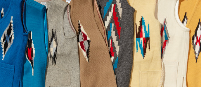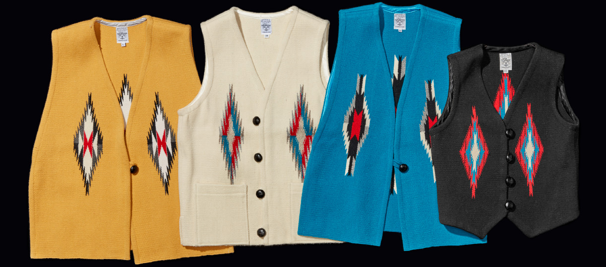 〈BEAMS BOY〉的一席正裝「CHIMAYO」編織的歷史大約始於17世紀後半期。Ortega的初代Gabriel Ortega從現在的墨西哥來到新墨西州「CHIMAYO」城鎮,以他為首開始代代相傳的織造技術,到現在還在以古老的製法進行家庭工業生產。作為「CHIMAYO」編織正宗始祖的〈ORTEGA〉,卻因年輕人出外工作,後繼者逐漸減少。我只希望腦海中一邊繪圖一邊達到左右對稱編織的職人技術,也就是沒有設計圖的這種編織技術及傳統,能夠永久地傳承下去。以前祖先穿起來很帥的「CHIMAYO VEST」,永遠是我們所擁有最好的一套服裝。