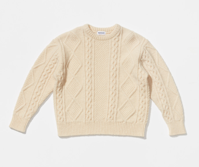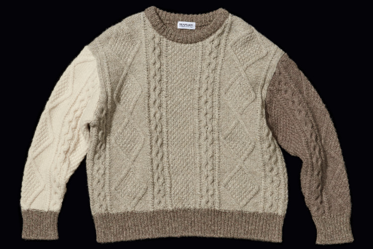 擁有一件白色的阿蘭毛衣(Aran Sweater)從19世紀中期到20世紀,將以根西衫為代表的漁夫毛衣改良,加入更多獨特的針法而誕生的阿蘭毛衣(Aran Sweater)。1956年,最先把毛衣介紹給全世界的是迪奧(Christian Dior)。1960年代,因為美國的年輕領袖甘迺迪(John F. Kennedy)穿著故鄉愛爾蘭的毛衣而廣為人知。在日本,1964年雜誌「MEN'S CLUB」加入卷首之中的頁面,作為「凹版頁」。由於,VAN Jacket的石津祥介(創業者謙介的兒子)向一位在攝影時同席的一位青年,懇求其讓出在巴黎迪奧得到的阿蘭毛衣。之後便作為“漁夫毛衣”在日本掀起了熱潮。〈BEAMS BOY〉每年都會推出經典的白色、拼接配色等採用傳統編織圖形的基本款阿蘭毛衣。