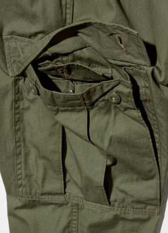 在左側貼袋(Cargo Pocket)的內側配有隱藏口袋。另外,通常貼袋(Cargo Pocket)中會配有止血用的繩子,不過,由於在穿的時候會造成干擾,所以在這次的別注中去除了此細節。