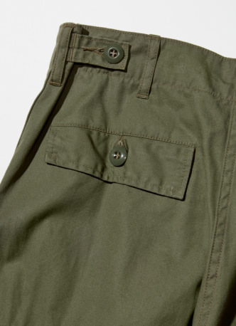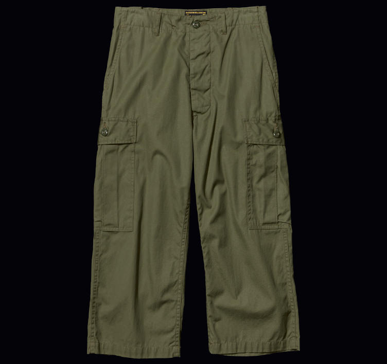 擁有橄欖綠(Olive Drab)的軍褲光是美軍就有無數種類的軍褲存在。其中首先要提到的一定是經典色橄欖綠(Olive Drab)。從兩次世界大戰、韓戰、越戰和森林地帶的戰爭不斷持續,因爲其高掩飾性而被重視,成為了軍隊的標準。為了尋求偽裝功能,即使是橄欖綠(Olive Drab)也沒有存在一個明確的顏色。設想那個生產國和軍隊被派遣到的地方的綠而被設計出來的軍褲,不僅僅是年代,在各式各樣的要素上也產生了變化。在這麼多的褲子中,〈BEAMS BOY〉別注為採用越戰時的版型。為了符合我們的身長而將長度設定為較短,與流不流行無關,可以一直穿到破爛不堪,是〈BEAMS BOY〉引以為傲的經典中的經典。