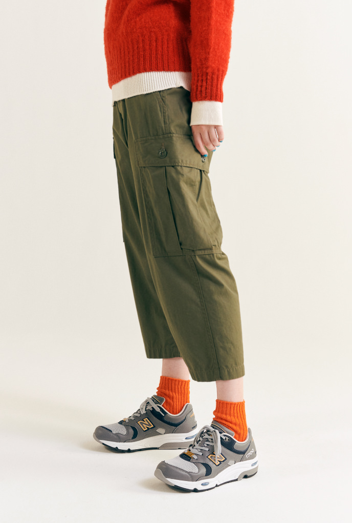 每一季都會登場的軍褲。對〈BEAMS BOY〉來說,與季節和流行無關,和牛仔褲及卡其褲相同,都被定位成一定要擁有的下半身單品。與〈BUZZ RICKSON’S〉別注的軍褲,是採用越戰時期通稱為「Jungle Fatigue Pants」的初期版型,其特徵是從上蓋口袋露出的鈕釦。素材考慮到熱帶氣候,使用輕量容易乾的棉質府綢。為了讓女生能夠輕鬆著用,將長度設定的較短,推薦可以和襪子的顏色做有趣的搭配。