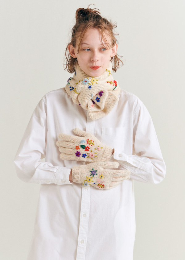 手工刺繡的花圍巾和手套是秘魯的手工製作。即使是相同的設計,每一朵花的造型也有所差異,這樣的溫暖定能傳遞到手上。