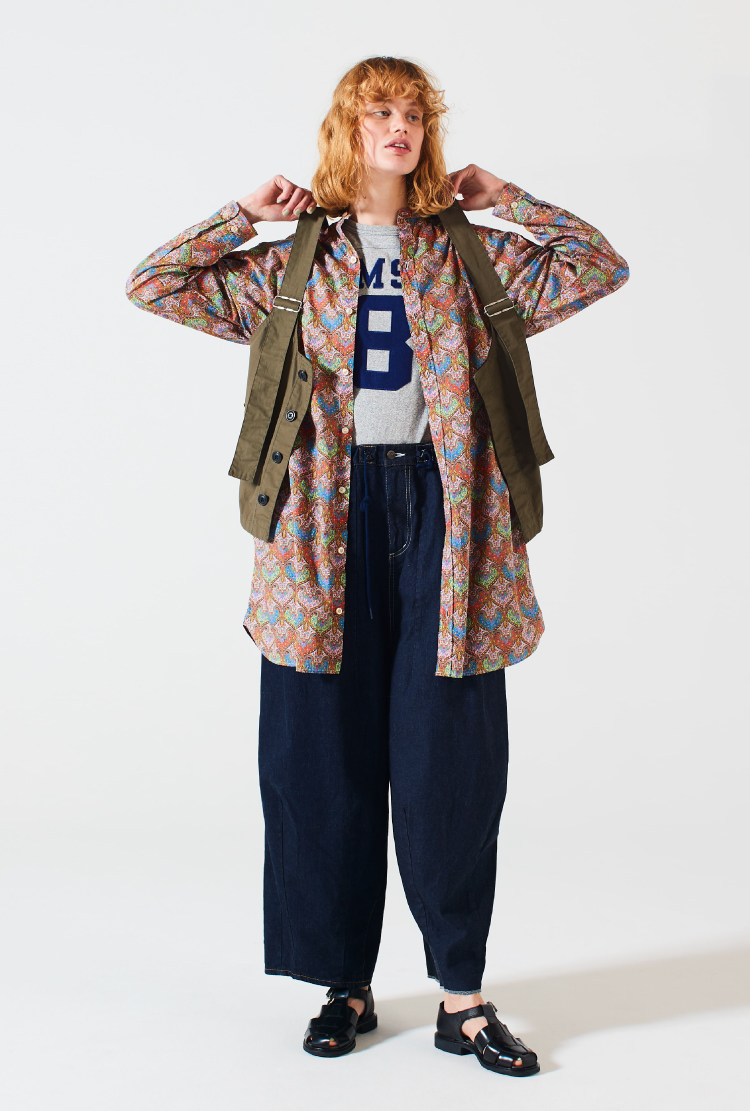 乍看之下是一件簡單的牛津B.D.襯衫,實際上卻藏著講究的細節。貼頸的合身領部剪裁,讓女性著用時即使扣上第一顆鈕扣也不會感到不舒適。左前開襟的樣式與男士襯衫相同。〈BEAMS BOY〉別注的小Logo放置若隱若現的下擺與襯衫鈕扣中。無腰身的設計,帶給大家小男孩的印象。