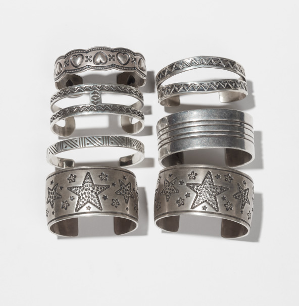 JEWELRY就是美國原住民的銀飾NATIVE AMERICAN JEWELRY。繼承著精神的部分,並以廣大的魅力影響著。各個部落、藝術家以不同的技法、款式。綠松石有非常多的種類,透過首飾就能夠知道由那裡的部落或是哪位藝術家製作,因此對於他們來講有著想要守護的極大意義。當我們配戴在身上時也同樣的被守護著,我們的特質被認同著般,雖然講起來或誇張但這個首飾就是這樣的存在。手工製作的魅力上也不會將人掩蓋,與〈BEAMS BOY〉極為合適的飾品。