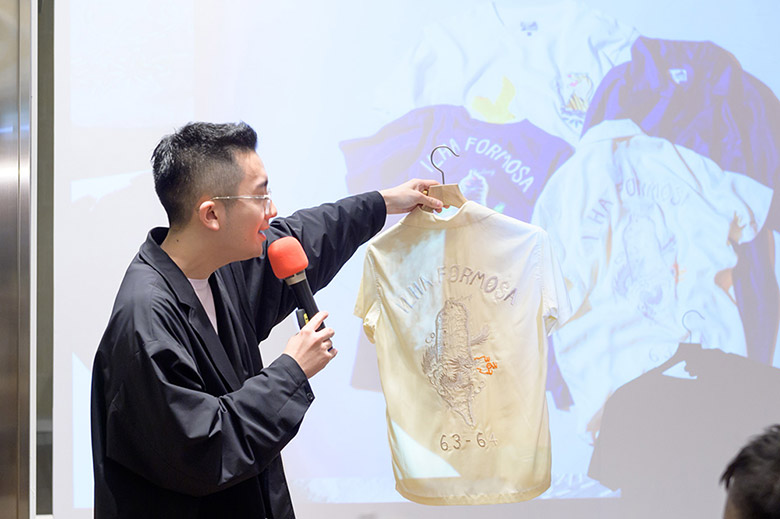 由BEAMS Taiwan企劃和合作,將美軍駐台時期的台灣地圖,以細膩的刺繡呈現。店長特別介紹,素白的襯衫上面令人耳目一新的白色島嶼與橘色火焰,為聯名增添全新意象。