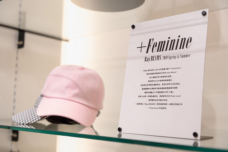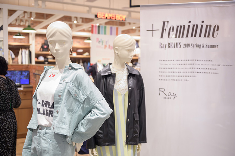 符合季節的自由穿搭,演繹獨立新女性所渴望的生活方式為概念。將“The Way of Chic”作為座右銘的女裝品牌<Ray BEAMS>,19SS的主題正名為“+Feminine”。透過有優雅光澤的面料洋裝與優美垂墜線條的裙,展現充滿魅力又不顯諂媚的「女性力量」。