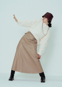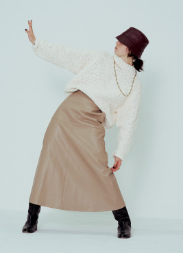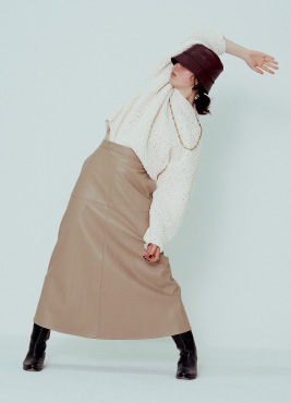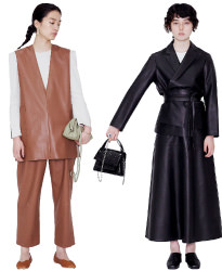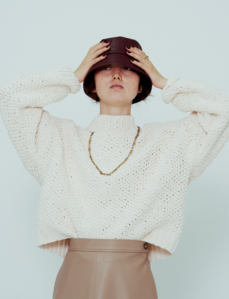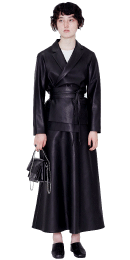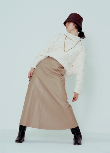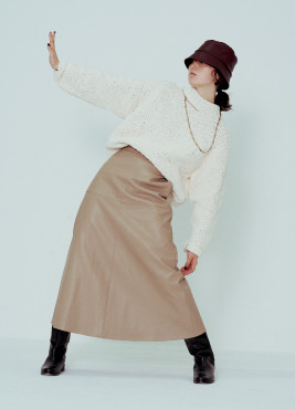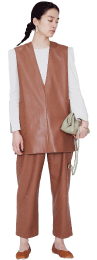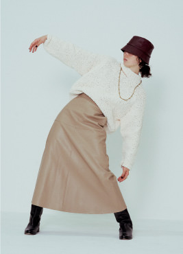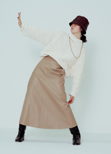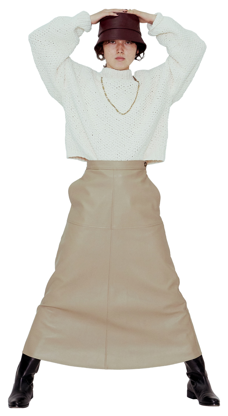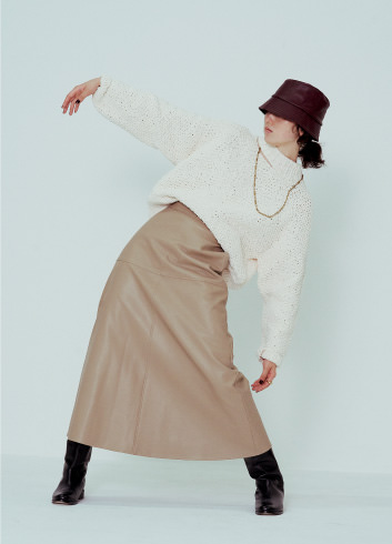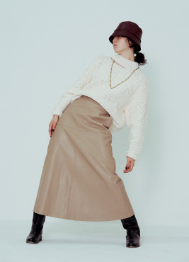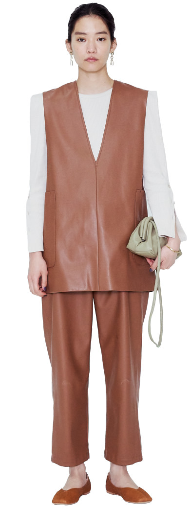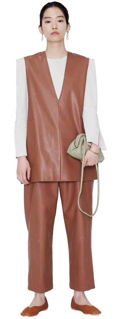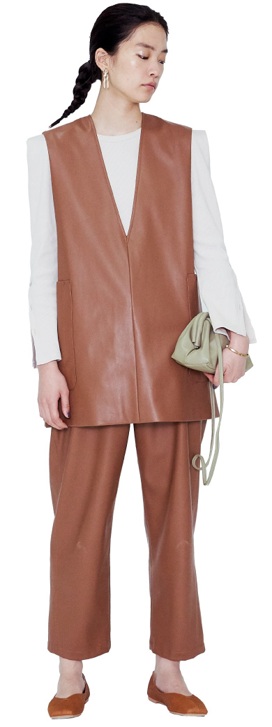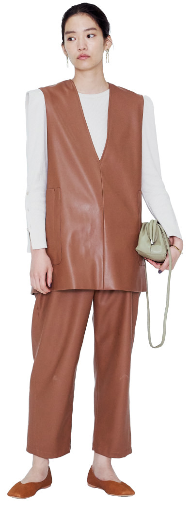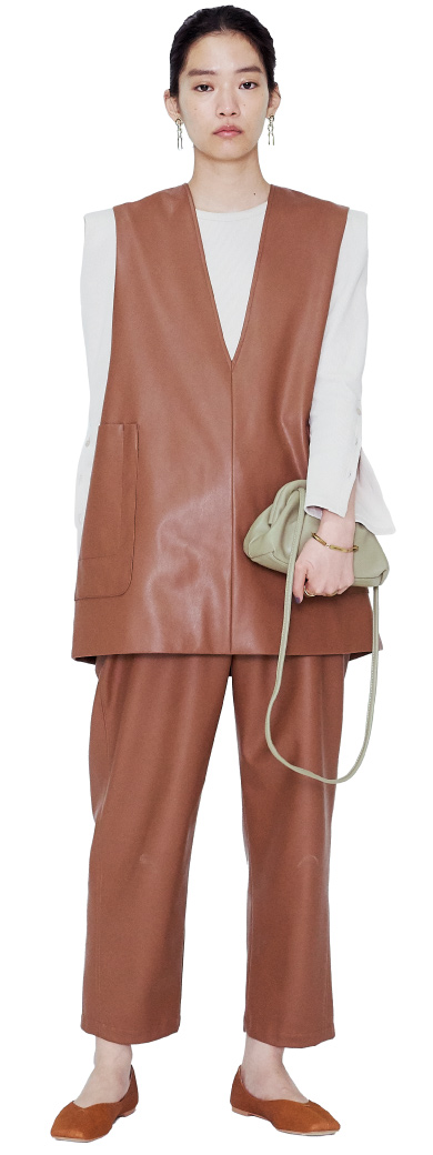比起真正皮革更為輕巧好入手的合成皮革。引人注目的光澤感,隨著動作輕晃的柔軟面料,單一件就能使整體穿搭氛圍更加分。