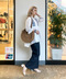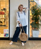 マンマミーア!の世界に出れそうな雰囲気のブラウスは一枚でサラッと涼しげに☺︎夏だけど二の腕気になる〜って方にはぴったりです◎お尻まで隠れるチュニック丈なのでスッキリしたスキニーパンツに合わせても可愛いです!