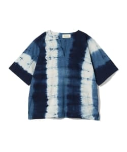 皆さま、こんにちは。 いつもスタイリング投稿写真にお付き合い頂きまして有難う御座います! 今回ご紹介の品は、前回に引き続き [和] アイテムをスタイリングしました。 インナーのカラーレスシャツはfennicaと福岡県で活動されている、宝島染工さんとの別注商品です。シャツのベースになっているのはアフリカの民族アイテムの ダシキシャツに天然藍を使い、絞り染めして居ります。濃い青色と染まっていない白色のあいだに手作業ならではの滲みが見られる為、独特の存在感です。インナーとしても、一枚としてコーディネートしてもお使い頂ける商品かと思います。ボトムスは前回ご紹介した久留米絣生地を使用したモンペパンツ。ウエストゴムになっている為、ユニセックスでご紹介して居ります。いづれの商品も残り少なくなって居りますので、早めに是非ご来店下さい。お待ちして居ります!