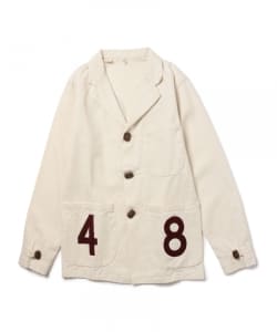 <BUZZ RICKSON’S×fennica>のファーストモデルのドリンキングジャケットを軸にしたコーディネイト。ナンバリングの“48”のバーガンディの色を首元のバンダナで拾ってみました。