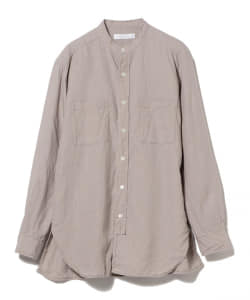 淡いパープルカラーのリネンシャツはありそうでない色。洗いのかかったラフな質感が背中のギャザーや、このブランド特有の太めのステッチを際立たせています。ニュアンスのあるカラーながら、比較的合わせる色を選ばない万能なアイテムです。