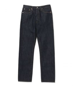 着用の<SUGER CANE>デニムパンツは66タイプの中でも後期型がベースになっています。股上みは1947年モデルに近い為、ハイウェストコーディネートにもはまるシルエットです。