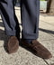 ネイビーのスポーティーなスーツスタイルに〈CONCETTO(コンチェット)〉コットンウールバルカラーコートを羽織りました。こちらは2枚から1枚袖に別注しており、流れる様なショルダーラインが魅力です。独特の光沢感も堪りません!