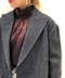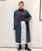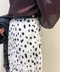 メンズライクな<CEDRIC CHARLIER>のコートはバックスタイルが大胆なチェック柄、フロントも赤いステッチがスタイリングを楽しませてくれす。インナーはエレガントに<MARTIN GRANT>、フロントがシンプルなのでスカートはダルメシアンスカートを。柄の遊びと素材の上品さを組み合わせました。