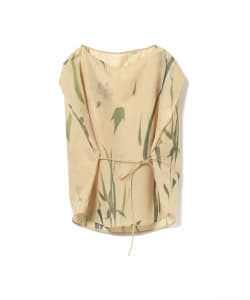 リラックス感がある、メンズライクな<seya.>のセットアップと、ナチュラルな色合いで女性らしい柔らかみのある<mame kurogouchi>のトップス。スモーキーなカラーリングがポイントです。