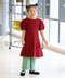クリスマスカラーのコーディネート♪グリーンの縁取りが可愛いニットワンピースはちょっとしたお出かけにもオススメです◎【身長116cm】