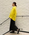 鮮やかなイエローが目を惹く<CINOH>のカーディガン。メンズのデザインをレディースサイズに別注したスペシャルなアイテム☆エコレザーのプリーツスカートを合わせて女性らしさをプラスしてコーディネートしました!