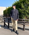 オーバーサイズのF1ジャケットなので足元は丈短く、レザーシューズで合わせました。ボーダーカットソーをイン、首元はペイズリーのストールで。