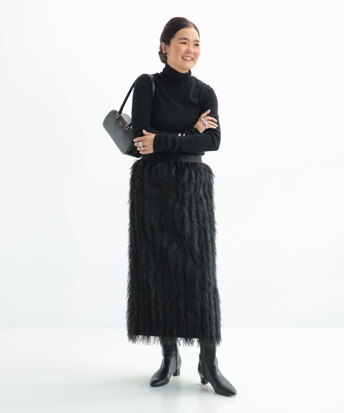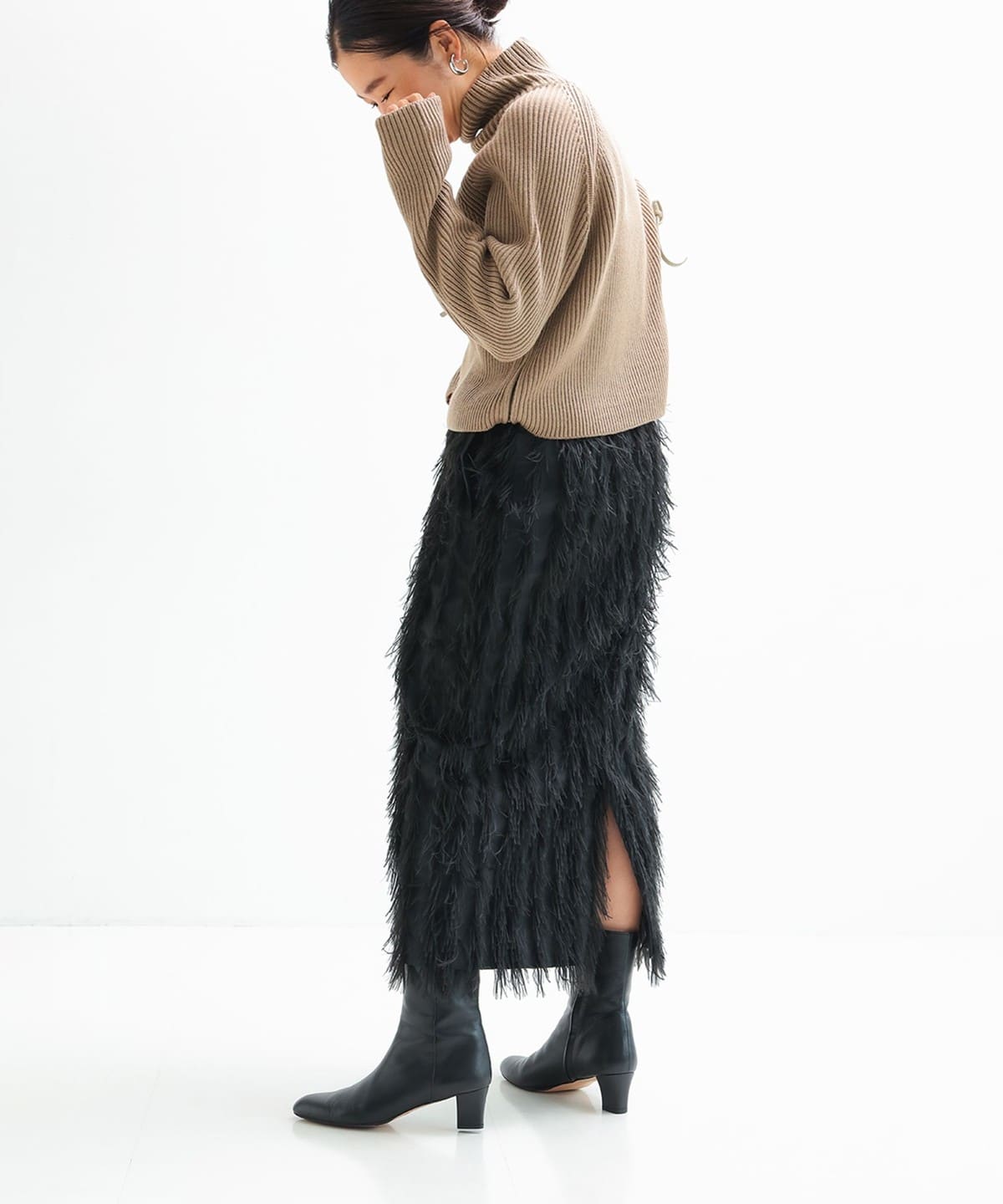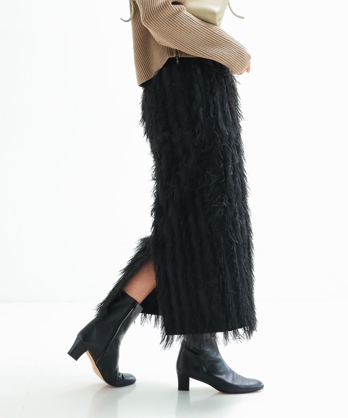 素材感でグッと華やぐフェザースカート。