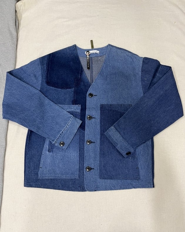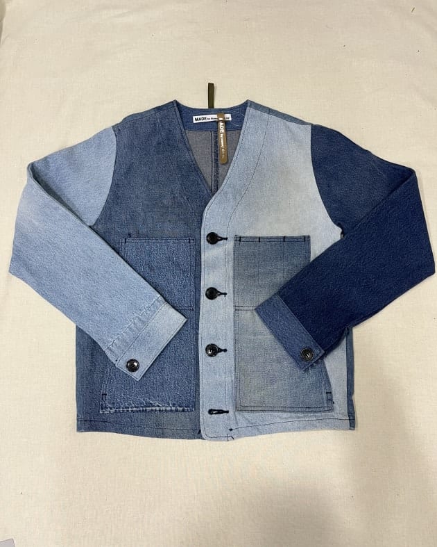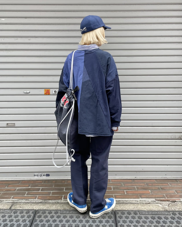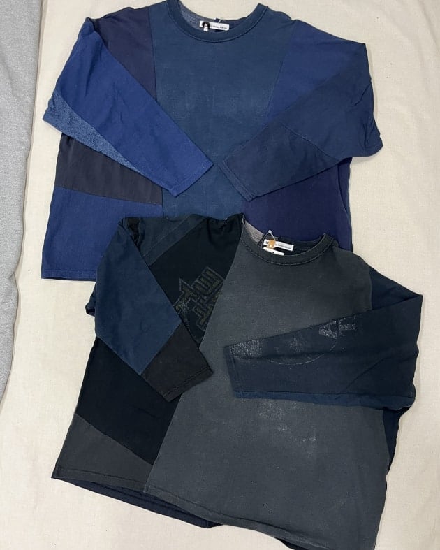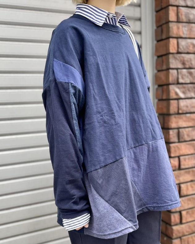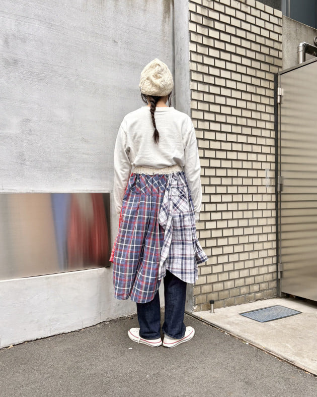 シャツのリメイクということで、背中にポケット部分があったりと、無駄のないパッチワークが印象的!