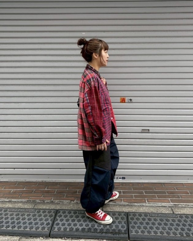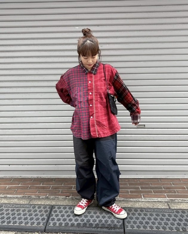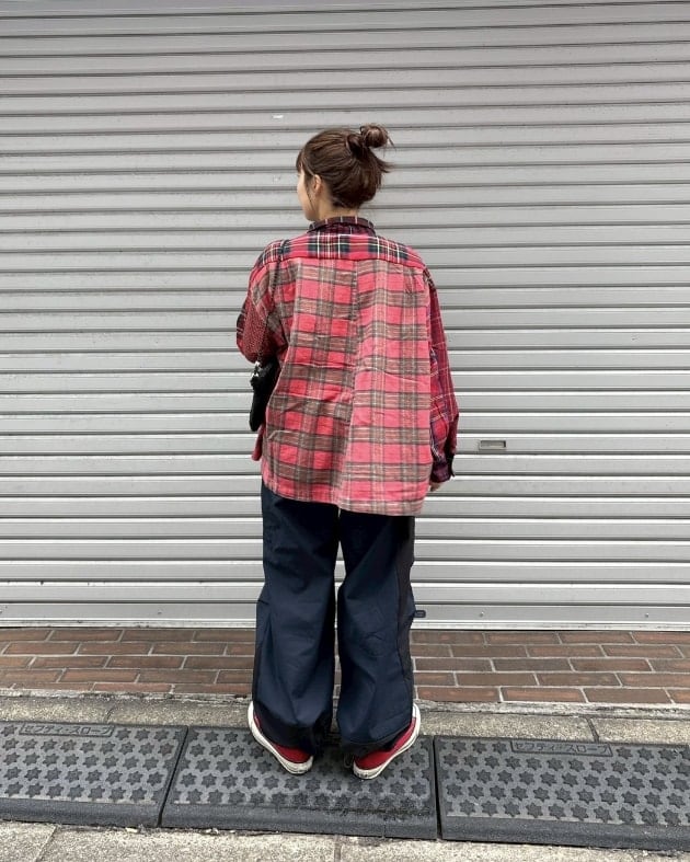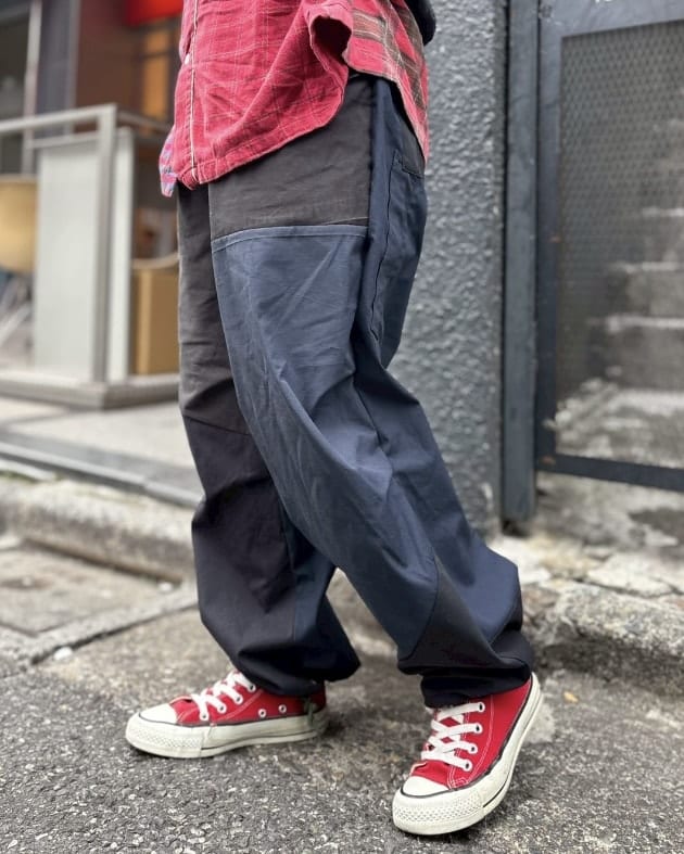 こちらも先ほどのコーデュロイパンツ同様、2本のパンツを左右でドッキングさせたリメイクアイテム!