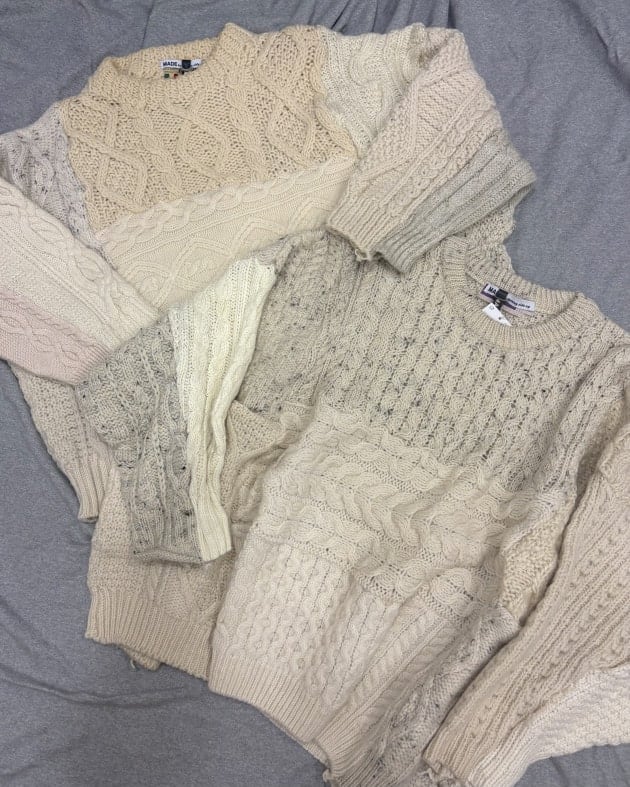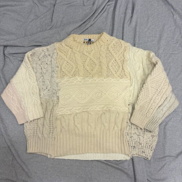 15枚のニットのパネルを合体させて作成された非常に贅沢なアイテム。