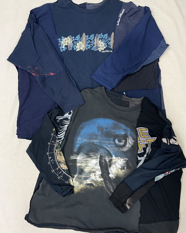 古着のTシャツの裏側の無地面を使ってパッチワーク!