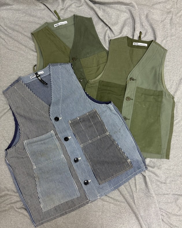 いくつかのハンティングジャケットをパッチワークにしてベストを作成!