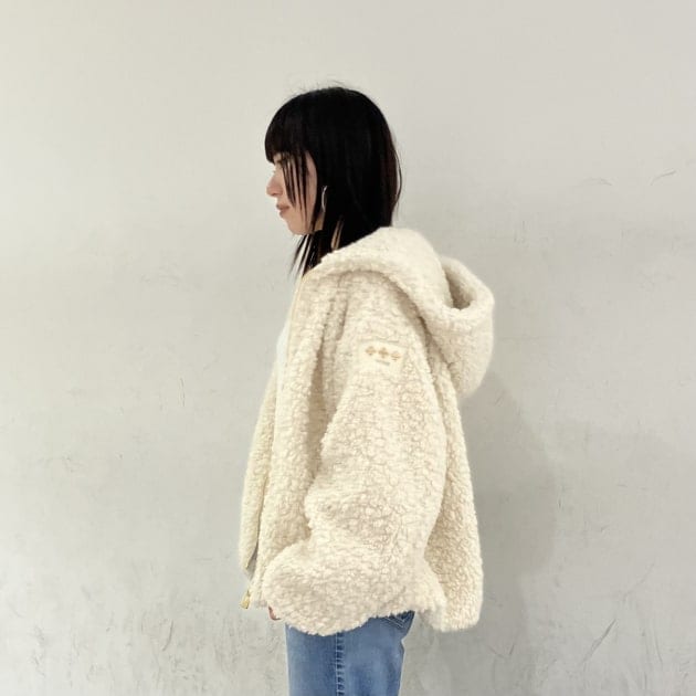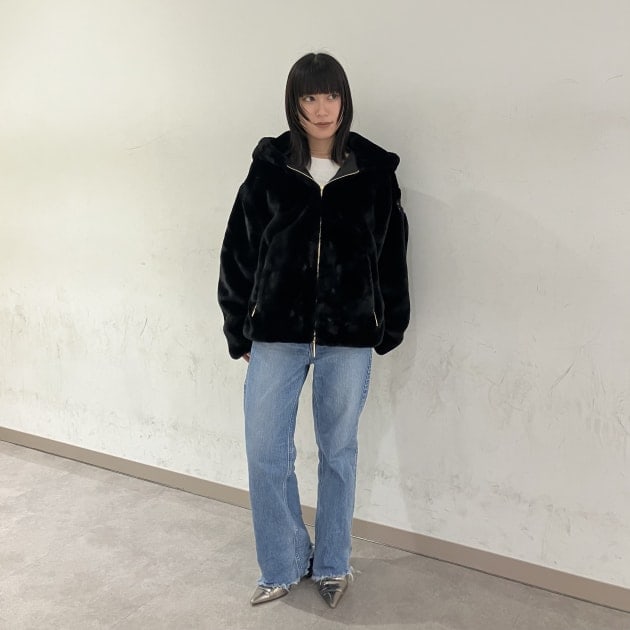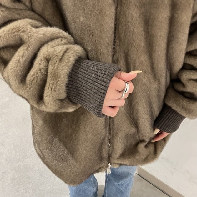 ラビットファー調エコファーを使用したフード付きブルゾンです。
