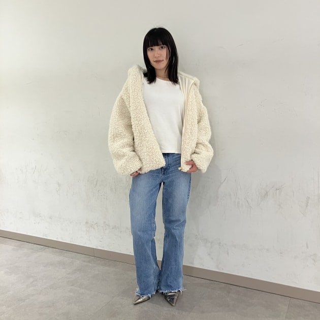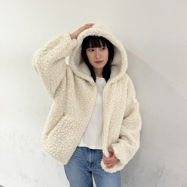 オーバーサイズのシルエットとフード付きデザインがこなれ感をもたらすジャケット。