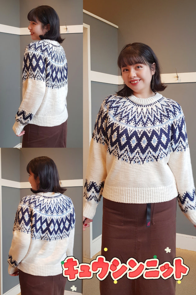 シンプルなパンツと合わせるだけでもコーデが決まりやすく、一枚で“主役になるニット” です。
