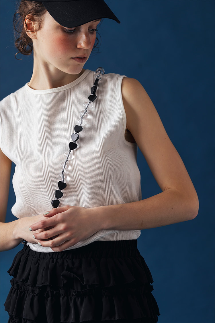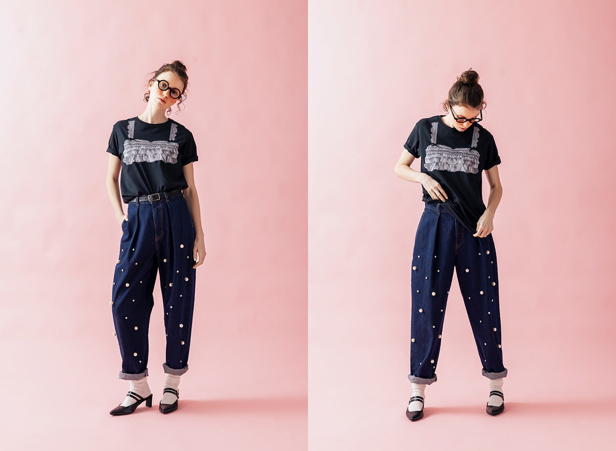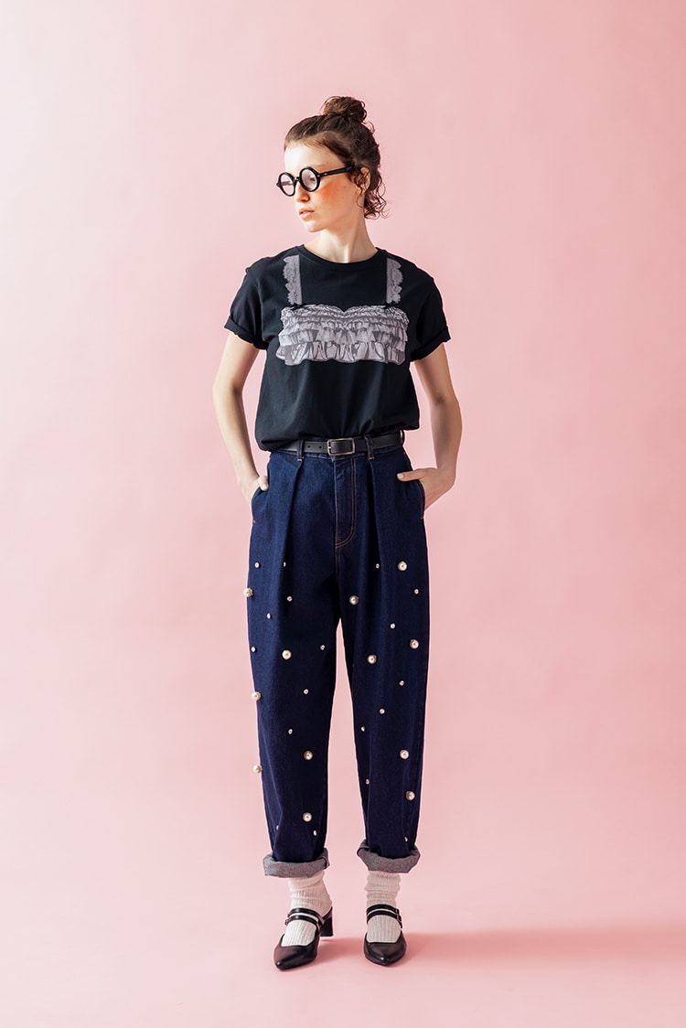 这次,吸引人眼球的格子图案的背带裤、点缀着珍珠和宝石的牛仔裤、粘胶印花的切缝针织衫等,从春天到夏天都想成为搭配的主角的单品一应俱全。