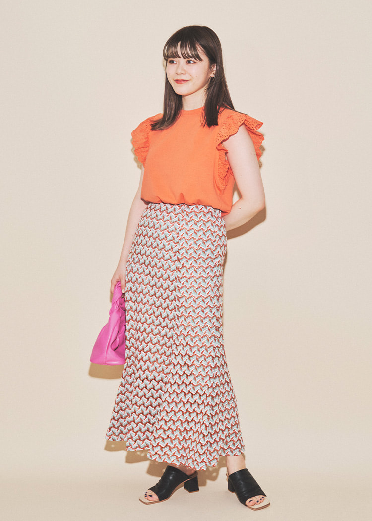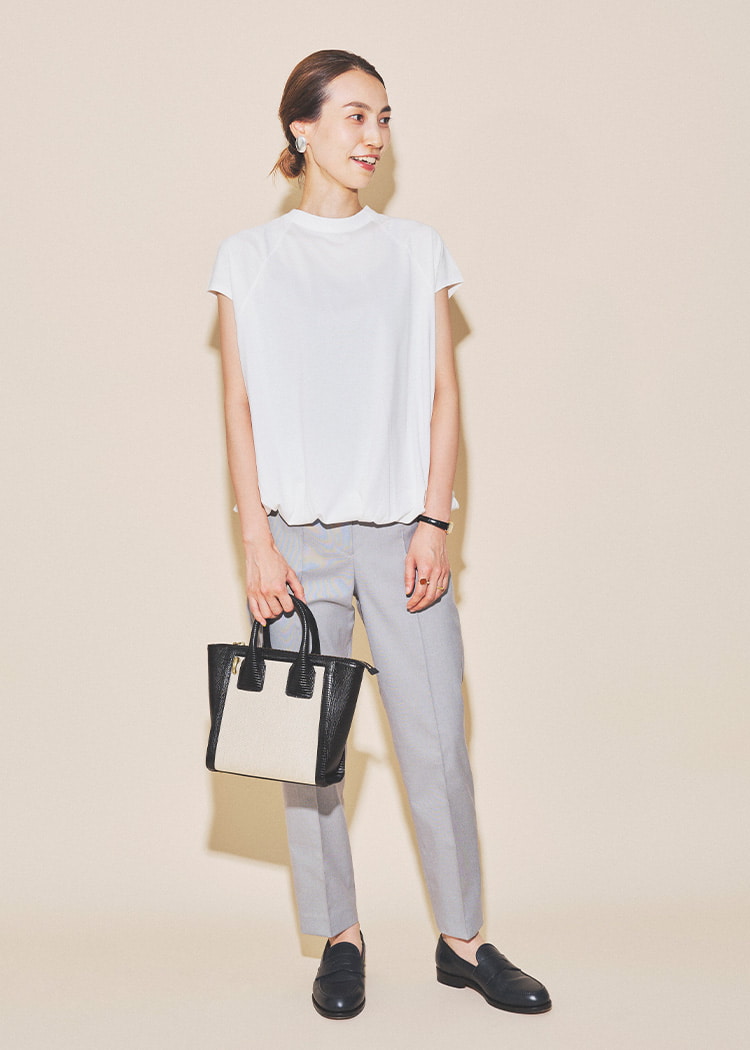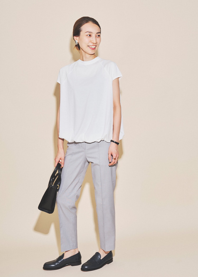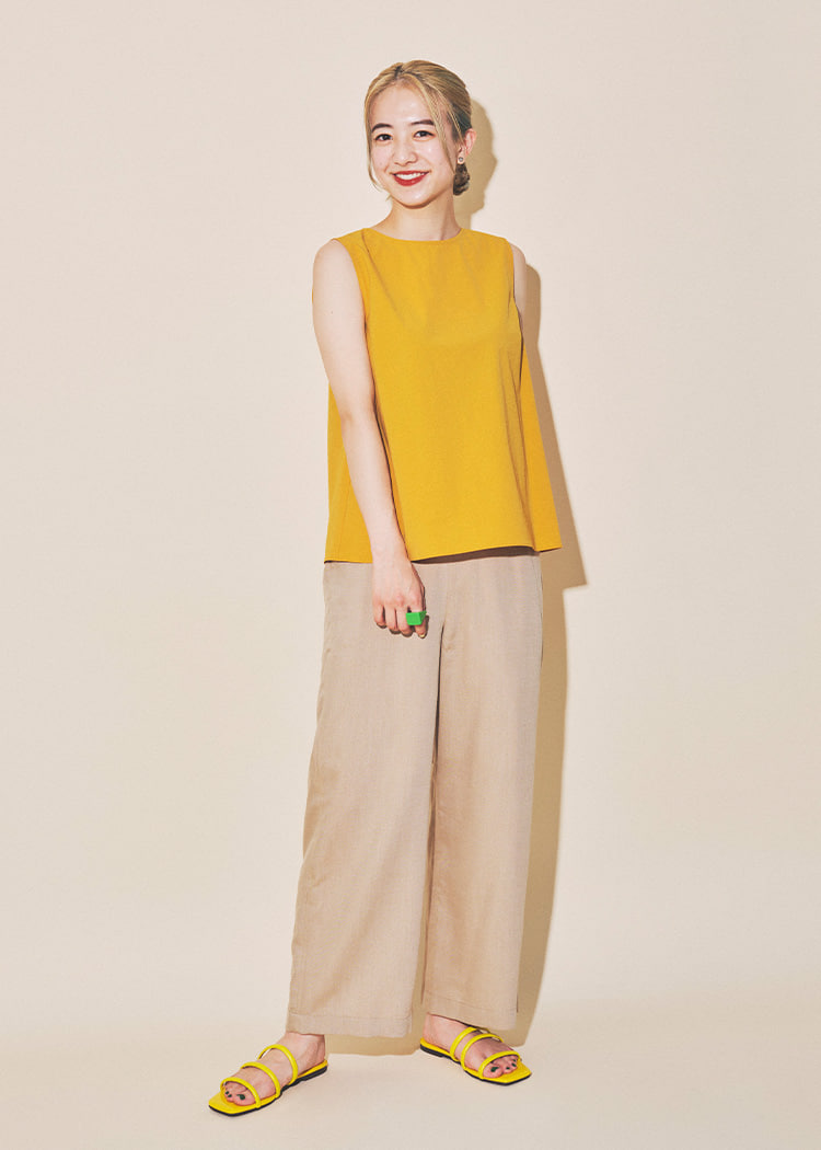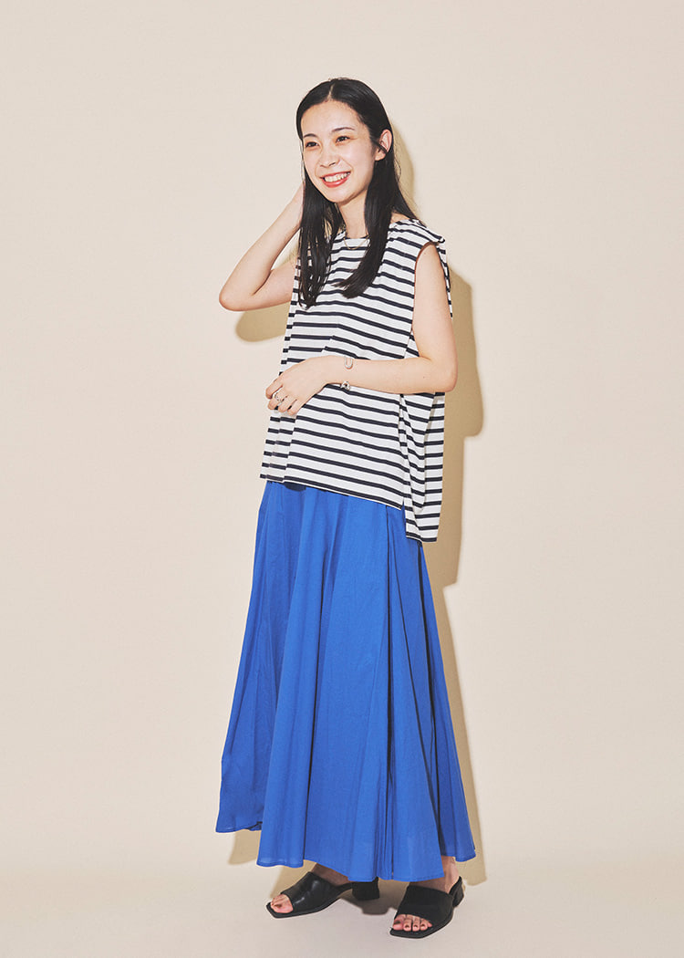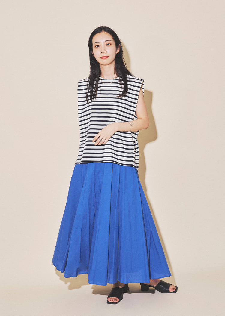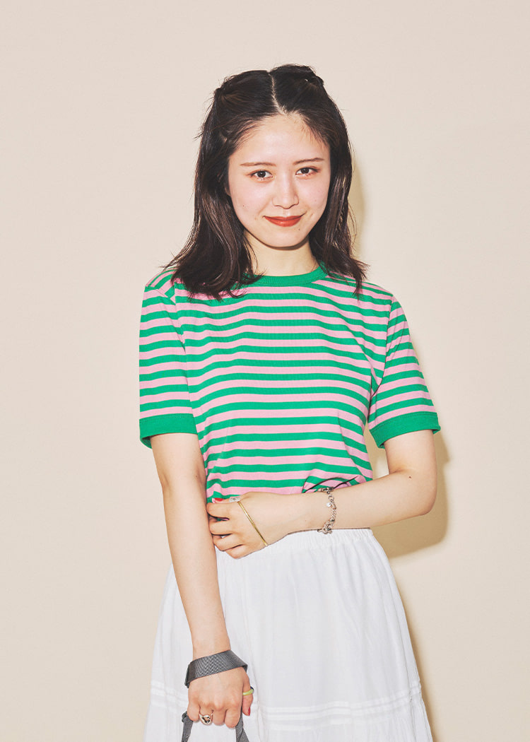 只需在简单的上衣上叠穿,即可轻松享受叠穿风格。为了不显得过于甜美,选择了清爽的下装。