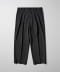 使用了具有垂坠感和弹性的羊毛热带面料,表现出纤细和休闲的绝妙的MIX感。腰部设计有拉绳,可以不系腰带穿着。下摆采用褶皱设计,可以轻松调整长度。