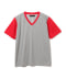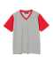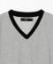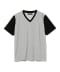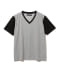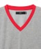 コットンとポリエステルの生地を使用することで、滑らかな肌触りに加え、ネックの伸びや型崩れを軽減したスタンダードフィットのVネックTシャツです。ミックスグレーとの2トーンがアクセントになっています。