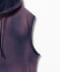 ■デザインヴィンテージウェアの質感を追求したスウェット素材のスリーブレスフーディ。袖口をカットオフ仕様にし、ポケットや裾に細かなダメージ加工を施すことで、年月を経たような風合いを再現しています。フロントには上下から開閉可能なダブルジップを採用しており、シルエットの変化を容易に楽しめます。