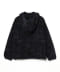 涤纶双面起绒面料上印有数码迷彩图案。双面起毛具温暖感。
