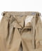 以英国的军装裤为基础,两侧的腰带给人留下了军装的味道,褶皱和零钱袋混合了斜纹棉布裤的设计。