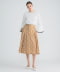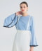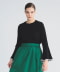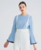 ■细节袖口设计有纤细的山路带子。拼接和褶皱组合而成的喇叭袖是这款商品的特色。