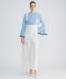 ■设计这款女式衬衫的亮点在于360度的喇叭袖。与饰品相映成趣的端庄圆领也是一大亮点。