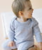 シンプルなリブのベビーカバーオールです。肌当たりの良いコットンポリウレタンの混紡素材を使用。