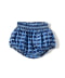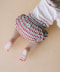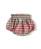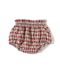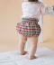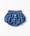 オリジナルのダイヤ柄と、ブロック柄のテキスタイルを使用したスペシャルなブルマ。やわらかい薄手の細畝コーデュロイを使用し履き心地も抜群。ウエストがフリルになっているので、ロンパースの上から穿くと一気に特別感のあるスタイルに!秋色タイツとの相性も抜群です。