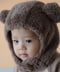 あたたかさとかわいさを兼ね備えたベビーキャップ。可愛いクマさんに変身した姿は愛くるしく、首回りまであたたかく包み込んでくれるから寒い冬も安心です。