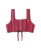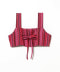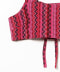 鮮やかなピンクとレッドをベースに、ブラックのラインが際立つデザインのビスチェ。