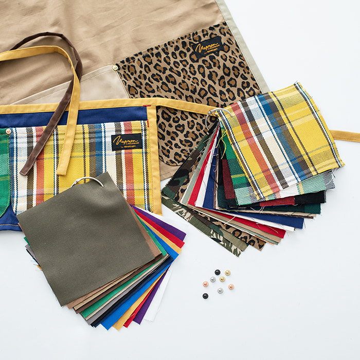 『PATIENTS BAG』有迷你和标准的2种尺寸,『APRON』以挂在脖子上的类型和缠在腰上的类型的2种类型为基础,从适合各个部分的纺织面料的颜色和图案中选择您喜欢的组合,可以享受只属于您的特别定制。