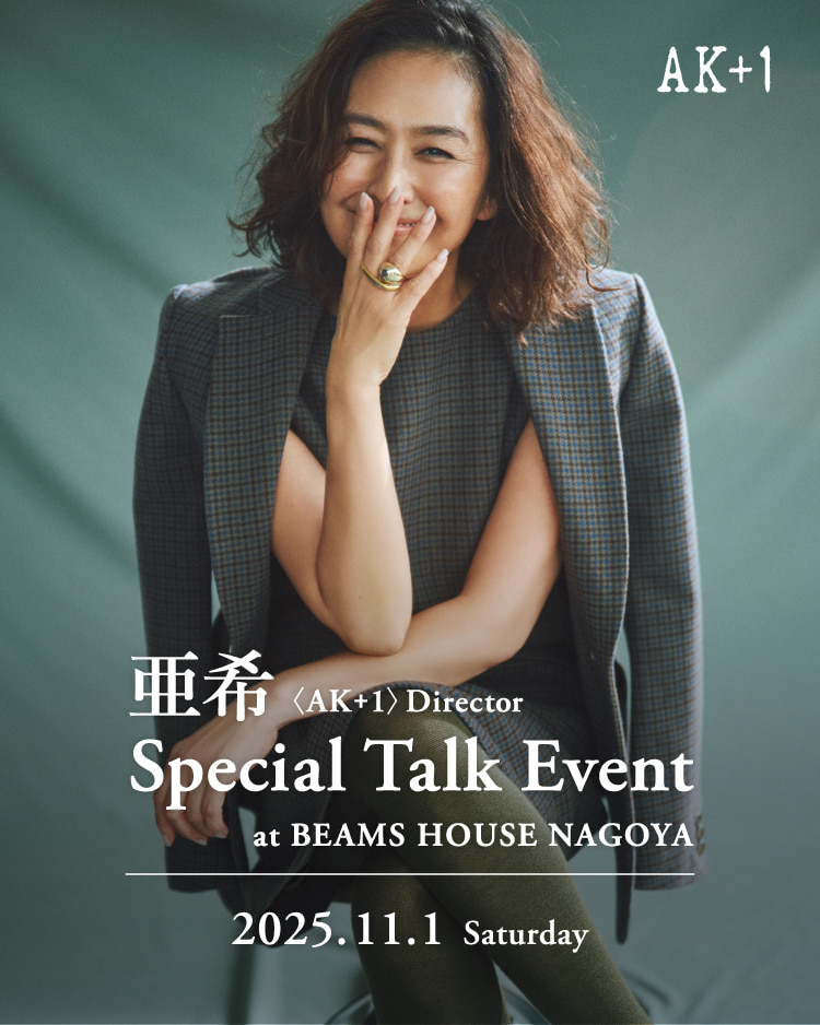 毎回ご好評いただいている、〈AK+1(エーケーワン)〉のディレクターを務める亜希さんをお招きしたトークイベント。今回は「ビームス ハウス 名古屋」の隣のビルにある別会場にて開催します。