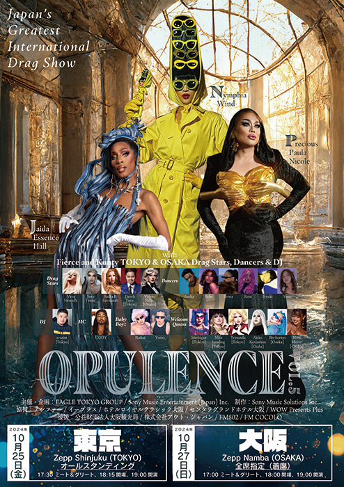 “OPULENCE”是由被称为拖曳界教母的勒·保罗主持的“勒·保罗的拖曳赛”衍生而来的拖曳赛。可以欣赏到国内外的勇者斗恶龙带来的强大而豪华的表演,以及用时尚表现自己个性的赋权的一面的娱乐秀。这次是第五次,如果你是“Le Paul的Dora Grace”的粉丝,Jaida Essence Hall, Nymphia Wind, Precious Paula Nicole皇后必须看到三位皇后将使场地变得活跃。