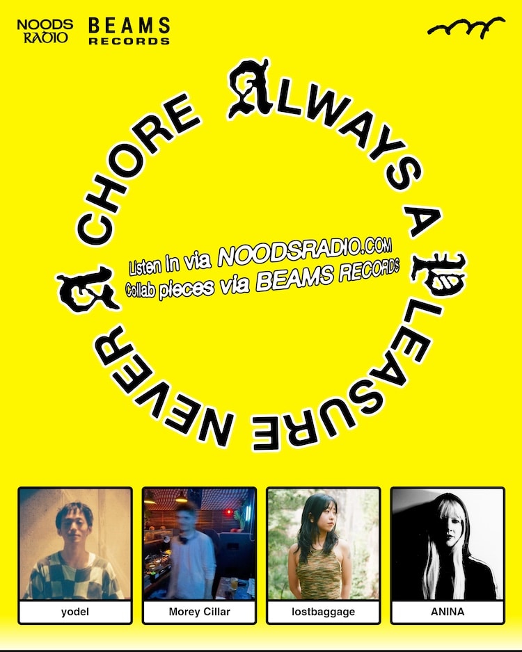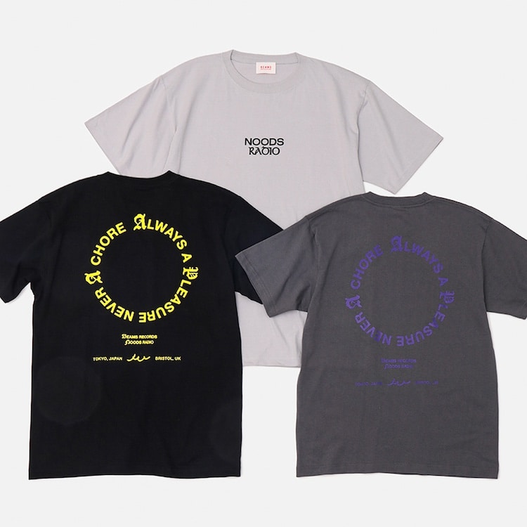 今回のコラボレーションでは〈Noods Radio〉と〈BEAMS RECORDS〉が共鳴するスローガン "Always a pleasure never a chore(楽しさだけ、面倒は一切なし)" を掲げ、2つの都市の音楽好きなコミュニティを繋げるイメージのグラフィックを配したアイテムを3型発売します。また、双方が注目するブリストルと東京で活躍する若手のDJ、アーティストによるラジオ番組を4週に渡ってお届けします。