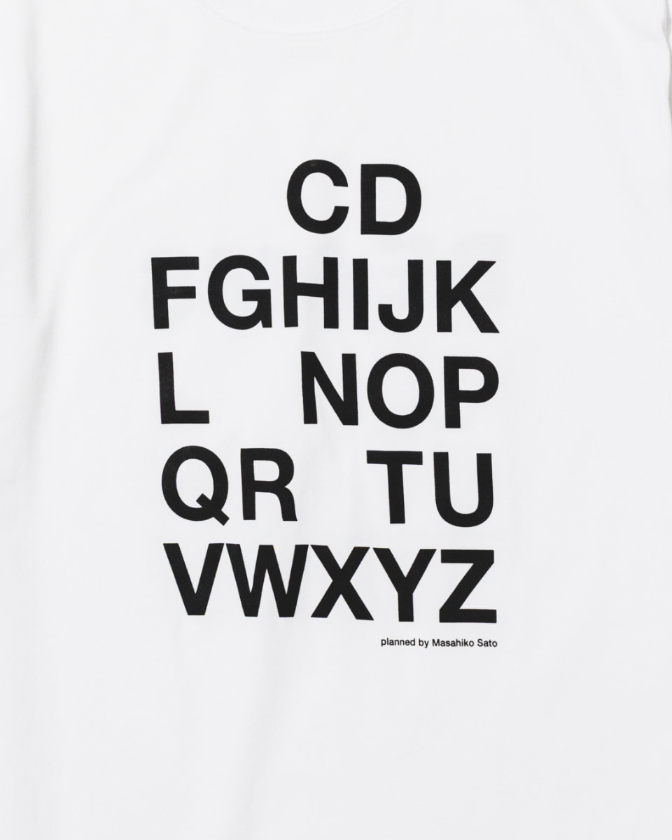 数学に登場する補集合。“「全体」が決まっている時、ある特定の要素Aをそこから抜き出し、残りの要素をすべて集めたものを「Aの補集合」と呼びます”。展覧会では紹介されていない方法論で、今回のコラボレーションの中でもっとも数学的かつ“佐藤雅彦的なアプローチ”として表現されたグラフィックデザインとなりました。広く使用される欧文フォント「ヘルベチカ」を使用し、インレタ(インスタントレタリング)を想起させるレイアウトに配された、21文字のアルファベット。26文字から抜き出されたグラフィックは、何の補集合でしょうか。