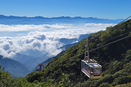 人気の観光スポットは、駒ヶ岳ロープウェイで行くことのできる中央アルプス「千畳敷カール」。カールとは、山肌が氷河の浸食によって削られたお椀型の窪地を指し、標高2,600mで夏は高山植物、秋は紅葉など、四季折々の絶景を楽しむことができます。